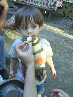 Your pictures are making me extremely hungry...everything looked so good! I loved the photo of the two boys walking into the woods. That was precious! You sure seem to have a lot of wonderful places to camp up there. I guess we'll have to head that way some day. Camping in the south isn't much fun in the summer.