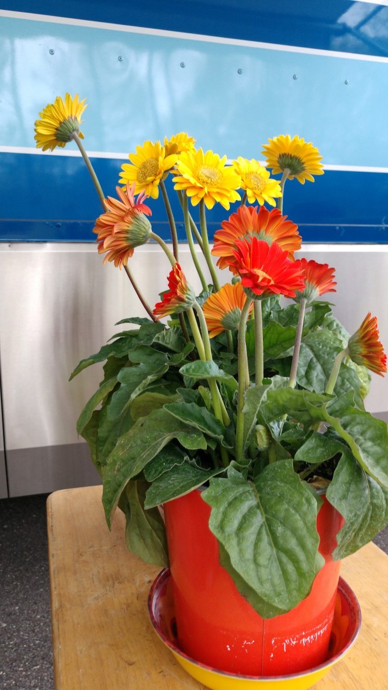I steamed up two cobs of sweet corn in the microwave, in the husk, for 7 minutes per ear. I made up some homemade potato salad earlier in the day so it was chilled in time for our meal. I got two lovely pots of gerbera daisies from Steveio for an early Mother's Day present, so we took them along for the trip to enjoy. When we get back home next week, we will plant them in the yard.
