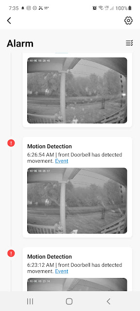 As it was, our neighbor said we had a whole herd of deer frolicking around in our yard while we were gone. Don't we know it! Our security cameras see everything. Not only were we getting alerted to deer, but also this morning our front camera was alerting us a movement on the front porch at 6 a.m. I looked at the screen and it appeared to look like rain.