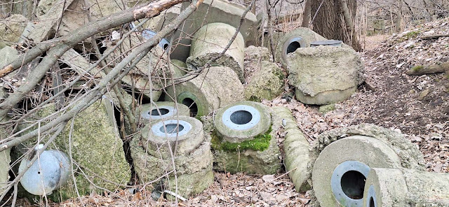 This time around, the weather was at least warmer at night. In the high '30s instead of the freezing temps. We had tracked him down and figured he was eating food at the neighborhood feral cat feeding station. We assume he was getting fresh water from the river which is not yet frozen over. We know he was sleeping somewhere in these concrete columns and yard waste from the city municipal workers.