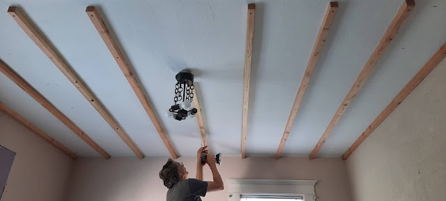 As soon as we borrow the neighbor's drywall lift and a little help from our son-in-law, the sheets of 12 foot long drywall will be attached to the ceiling.