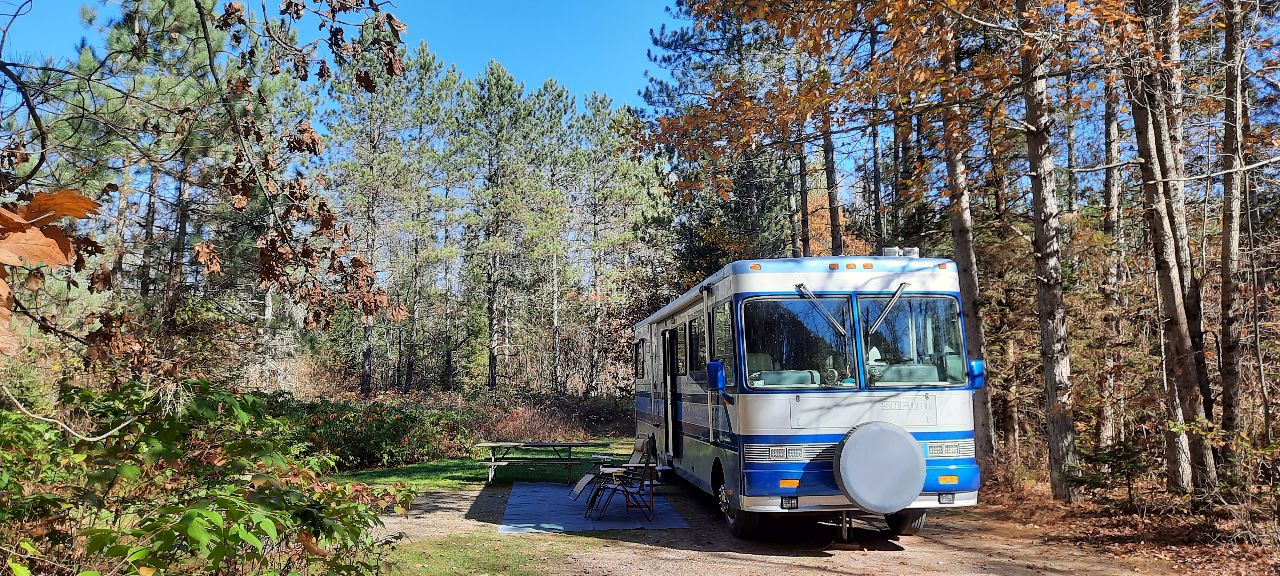 The campground we were aiming for is one we had never been to before. It is called Goodman Park, in Marinette County, just south and east of Goodman, Wisconsin. We saw on the GPS there were some back roads to get there, but we decided to go up Highway 141 and cut to the west on Highway 8. We THOUGHT that would be the best paved roads (we were wrong).